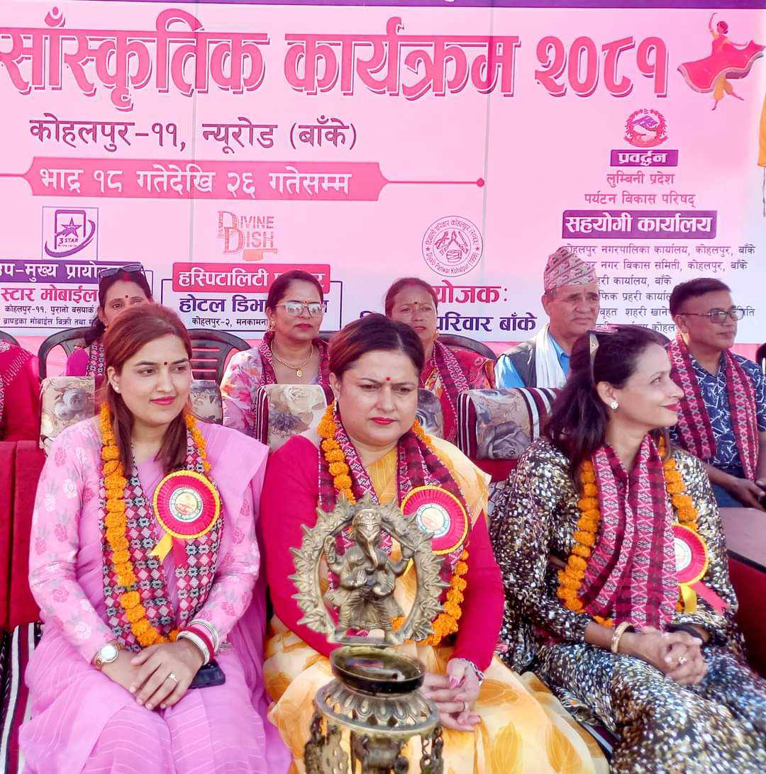मौलिक कला हाम्रो दायित्व र संस्कार, ऎतिहासिक हाम्रो पहिचान भन्ने मुल नाराका साथ मंगलबारदेखि कोहलपुरमा सुरु भएको तीज विशेष सांस्कृतिक कार्यक्रम-२०८१ मा कोहलपुर नगरपालिकाका कार्यबाहक मेयर संगीता सुवेदीले यस्तो बताएकी हुन् । उनले, हाम्रो आमाको बालापनको उमेरताका गाइने, बज्ने गर्ने गरेका जस्ता गीत, संगीत बिस्तारै हराउँदै जान लागेकोमा चिन्ता व्यक्त गरिन ।
