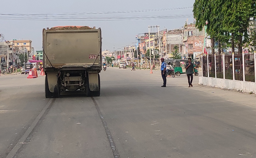 जनकपुर-ढल्केबर सडक खण्डमा मिथुन र विनोदजस्ता हजारौं सर्वसाधारण दिनहुँ टिपर र ट्याक्टरबाट उड्ने धुलो र खस्ने गिट्टी बालुवाबाट सास्ती व्यहोरिरहेका छन् । ढल्केबरदेखि जनकपुरसम्म चार ठाउँ (ढल्केबर, सखुवा महेन्द्रनगर, लक्ष्मीनिया, मुजेलिया) मा ट्राफिक प्रहरी चेकपोस्ट छ । दर्जनौं टिपर र ट्याक्टर ट्राफिक प्रहरीकै अगाडिबाट बालुवा उडाउँदै, पानी चुहाउँदै जनकपुरधाम बजार प्रवेश गर्छन् । तर प्रहरीले तिनका चालकलाई रोक्न त परैजावस्, सम्झाइ बुझाइ समेत गर्दैन ।