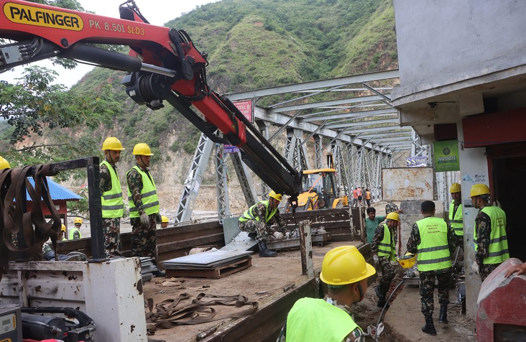 सडक डिभिजन कार्यालयसँगै समन्य गरेर नेपाली सेनाको टोलीले अहिले बेली ब्रिज राख्नुपूर्वको प्रि-वर्कको कामहरु गरिरहेको छ । यसमा नक्सांकनदेखि कसरी काम गर्ने भन्ने विषयहरु अध्यनन भइरहेका छन् ।