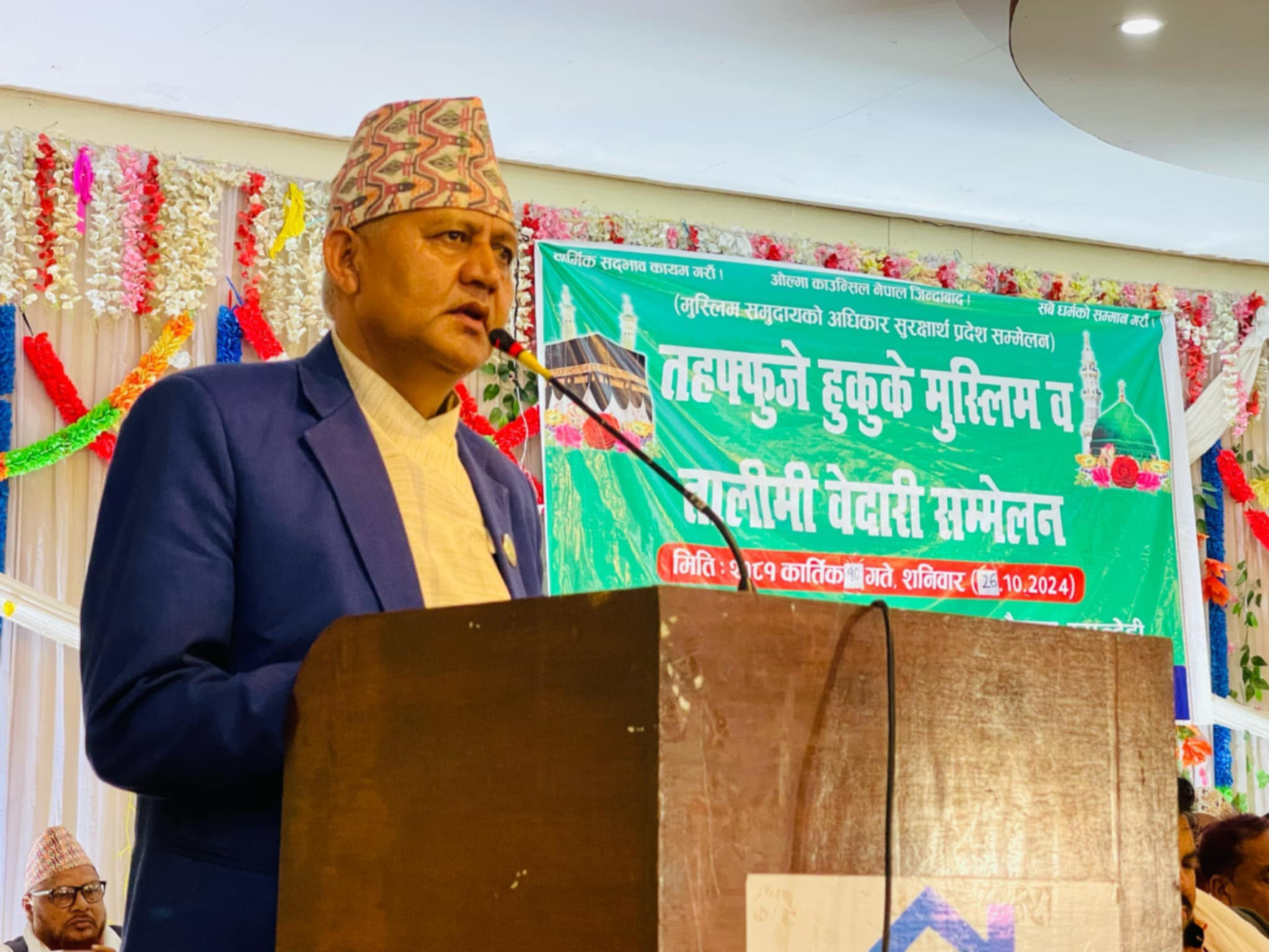 यस बारेमा हामी सवै संवेदनशिल बन्न जरुरी छ ।’ समुदायका विपन्न नागरिकहरुलाई आर्थिक रुपमा बलियो बनाउन व्यवसायिक तथा सिप अभिवृद्धिको कार्यक्रम अघि बढाउने, निरोगिताको लागि स्वास्थ्य उपचारमा पहुँच बढाउने, सामाजिक चेतना अभिवृद्धिका अभियानहरु व्यापक बनाउनुपर्ने बताउनु भयो । धार्मिक सद्भाव कायम राखौं, सबै धर्मको सम्मान गरौं भन्ने मुख्य सन्देश सहित ओल्मा काउन्सिल नेपाल रुपन्देही शाखाको आयोजनामा ‘तहफ्फुजे हुकुके मुस्लिम व तालीमी वेदारी’ सम्मेलन २०८१ सुरु भएको छ ।