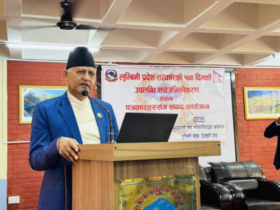 दाङ-लुम्बिनी प्रदेश सरकारले एकसय दिनकाे अवधिमा सम्पादन गरेका १०१ उपलब्धि सार्वजनिक गरेको छ । मुख्यमन्त्री चेतनारायण आचार्यले सरकार गठनको एक सय दिनको अवधिमा सम्पादन भएका एक सय एक उपलब्धी पत्रकार सम्मेलनकाे आयाेजना गर्दै सार्वजनिक गर्नु भएको हो ।