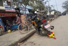 भेरी अस्पताल नेपालगन्ज अगाडि जथाभावी पार्किङ्ग गरिरहेको एउटा मोटरसाइकललाई ‘व्हील लक’ गरिएपछि । ट्राफिक प्रहरीले पार्किङ्ग व्यवस्थापनमा पहल गरिरहँदा अटेरी भएपछि व्हील...
