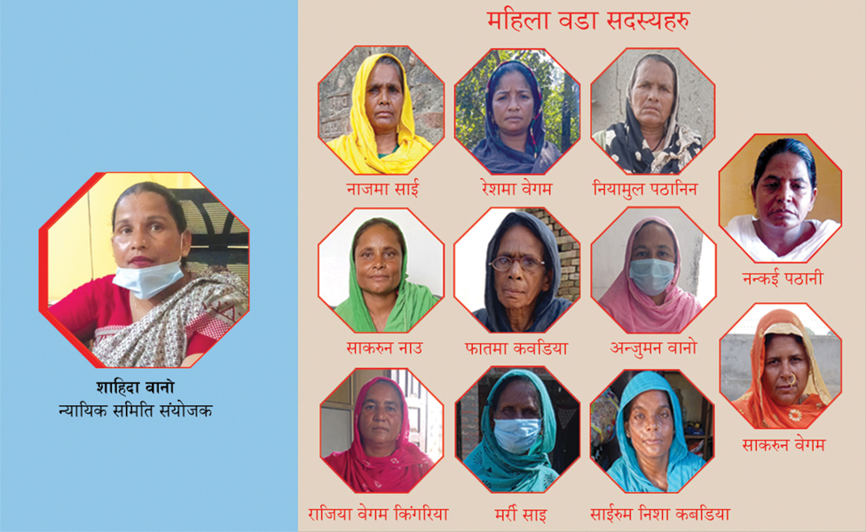 बाँकेको डुडुवा गाउँपालिकाकी उपाध्यक्ष शाहिदा वानोले पछिल्ला दुई वर्षमा ७० भन्दा बढी उजुरी छानबिन गरिन् । शाहिदा गाउँपालिकाको न्यायिक समिति संयोजक हुन् । तिनैमध्येको एउटा उजुरी छानबिन गर्ने क्रममा शाहिदाले विच्छेद हुन लागेको श्रीमान्–श्रीमतीको सम्बन्ध जोगाइदिइन् । त्यो जोडी सम्बन्धविच्छेदका निम्ति अदालत जाने तयारीमा थियो । तर, न्यायिक समितिमा आएपछि समझदारी र मेलमिलाप भई उनीहरूको सम्बन्धले निरन्तरता पायो । शाहिदा भन्छिन्, “सामान्य विवादका कारण टुट्न लागेको घरबार जोगाउन सकेकोमा खुशी छु ।” यो आर्थिक वर्ष २०७६/७७ को मुद्दा थियो ।