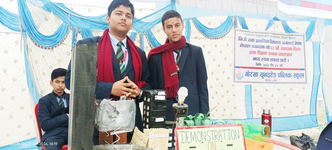 गोरखाका कक्षा ११ का विज्ञान संकायका मिलन रिजाल, विपुल आचार्य, जनश शाहीलगायतका विद्यार्थीहरूले प्रदर्शन गरेको प्रोजेक्टले प्रथम स्थान हासिल गरेको हो । स्प्रिङ डेलका नियल पौडेल क्याप्टेन रहेको विद्यार्थीहरूको टोलीले प्रदर्शन गरेको ‘मोडर्न फाम हाउस युज अल्टरनेटिभ सोरसेस अफ इनर्जी’ विषयक प्रोजेक्टले दोेस्रो स्थान हासिल गरेको थियो । प्रदर्शनीमा स्प्रिङका विद्यार्थीहरू सुशान्त शर्मा, आर्यन वली, जयन्द्र सिजापति, चिराग सुबेदी, रिदम शर्मा, अंकित गुप्ता, सुभम यादव, सुभास विष्ट र करण साहु सहभागी थिए ।