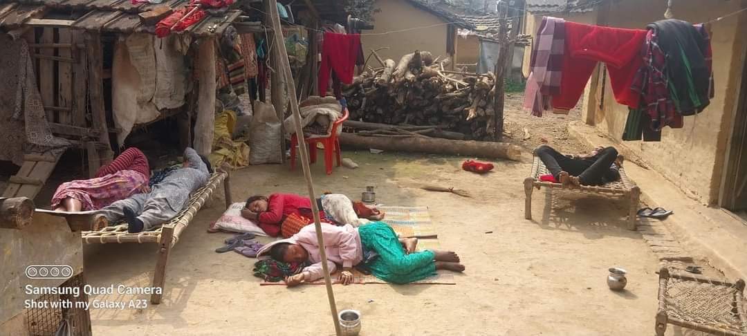 आइतबार गाउँम पुगेर उपचार गर्दै मधुवन नगरपालिका प्राथमिक स्वास्थ केन्द्रका स्वास्थ्यकर्मी ।
