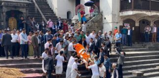 दाहालको पार्थिव शरीर अन्त्येष्टिका लागि आर्यघाटमा