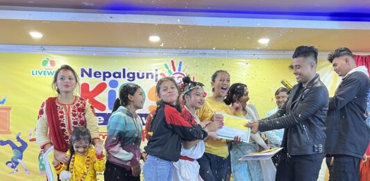 बालबालिकाको सिर्जनशीलता वृद्धिका लागि नेपालगन्जमा भव्य ‘बाल सिर्जना महोत्सव’ आयोजना गरिएको छ । दुई दिनसम्म बालबालिकाले आफ्ना सिर्जनशील क्षमता उजागर गर्ने साझा मञ्च बनेको महोत्सव शनिबार सकिएको हो । एउटै मञ्चमा काव्य रचना, वक्तृत्वकला प्रस्तुति, चित्रकला विधा, गायन, एकल तथा सामूहिक नृत्य लगायतका विधामा प्रिस्कुलदेखि कक्षा ५ सम्मका विद्यार्थीहरू बीच प्रतिस्पर्धात्मक सहभागिता गराइएको महोत्सवका आयोजक संस्था लाइभवेलका … Continue reading नेपालगन्जमा ‘बाल सिर्जना महोत्सव’